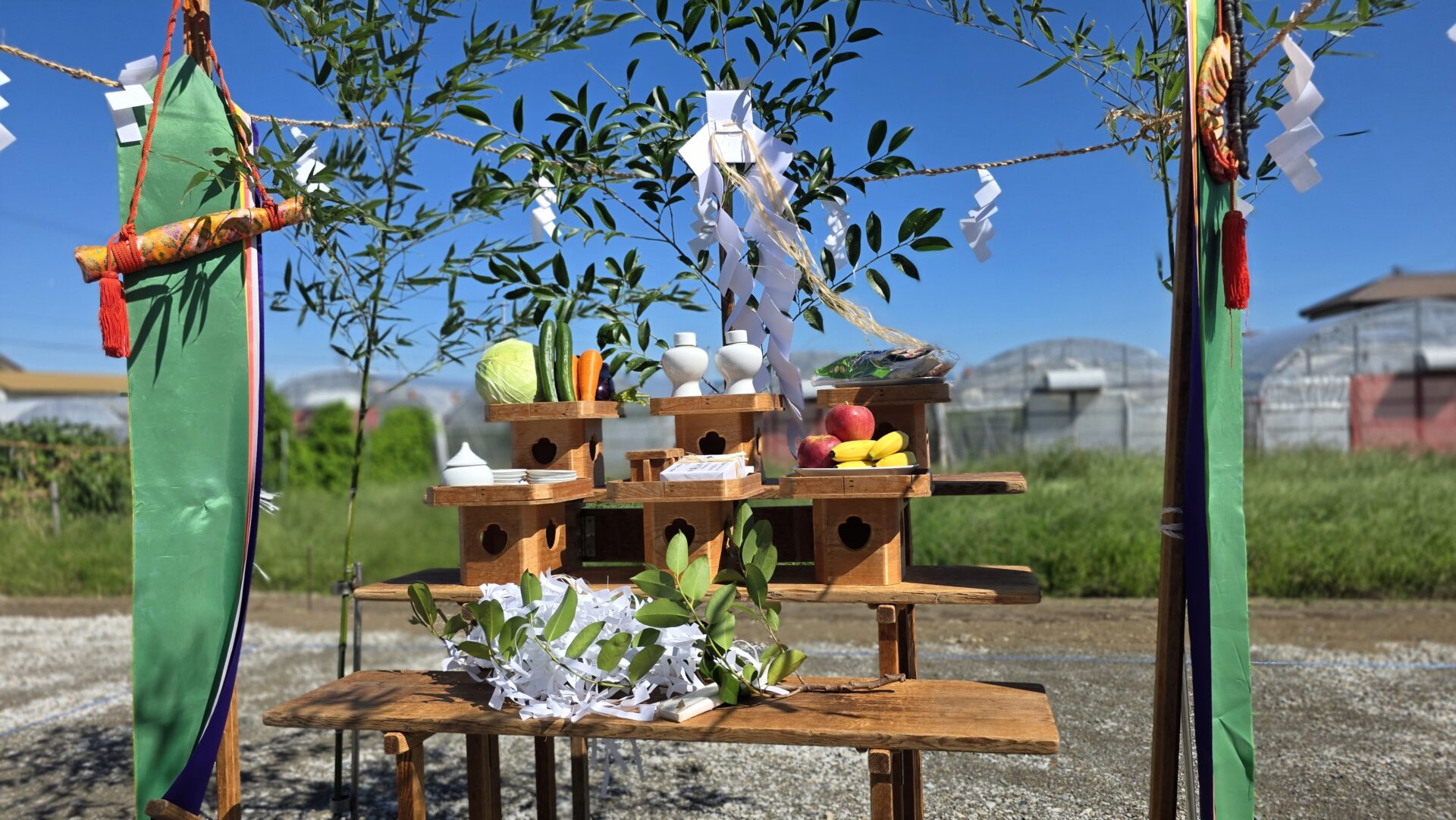 ご新築の現場では先日無事に地鎮祭を執り行わせて頂きました。